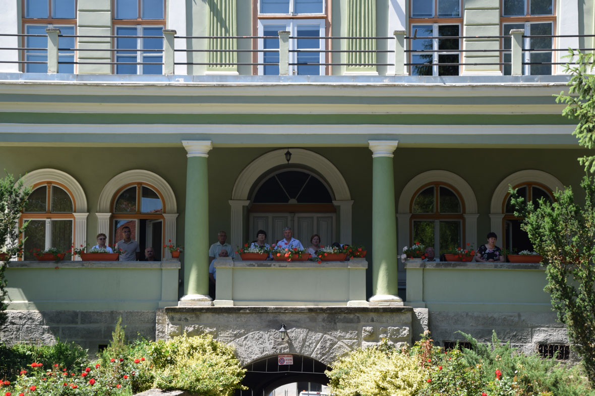 A legtutibb helyek a két szélen voltak, nem is kellett sokaknak álldogálniuk, mert padokat, székeket hordtak ki a kockakőre meg a Gimi bentlakásának füvére is. Az épület tornáca pedig alkalmi díszpáhollyá vált.