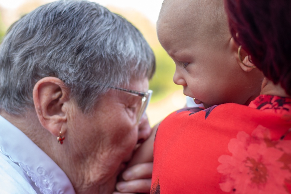 Négy hónapos kisbabát adogatnak kézről kézre az ágyon ülő asszonyok az Ambrus család összejövetelén. A gyermek imádja, ha beszélnek hozzá, nagyokat mosolyog, ha valaki vele foglalkozik. Pál Benett 2020-ban született, ő az első ükunokája a 92 éves Juli mamának.