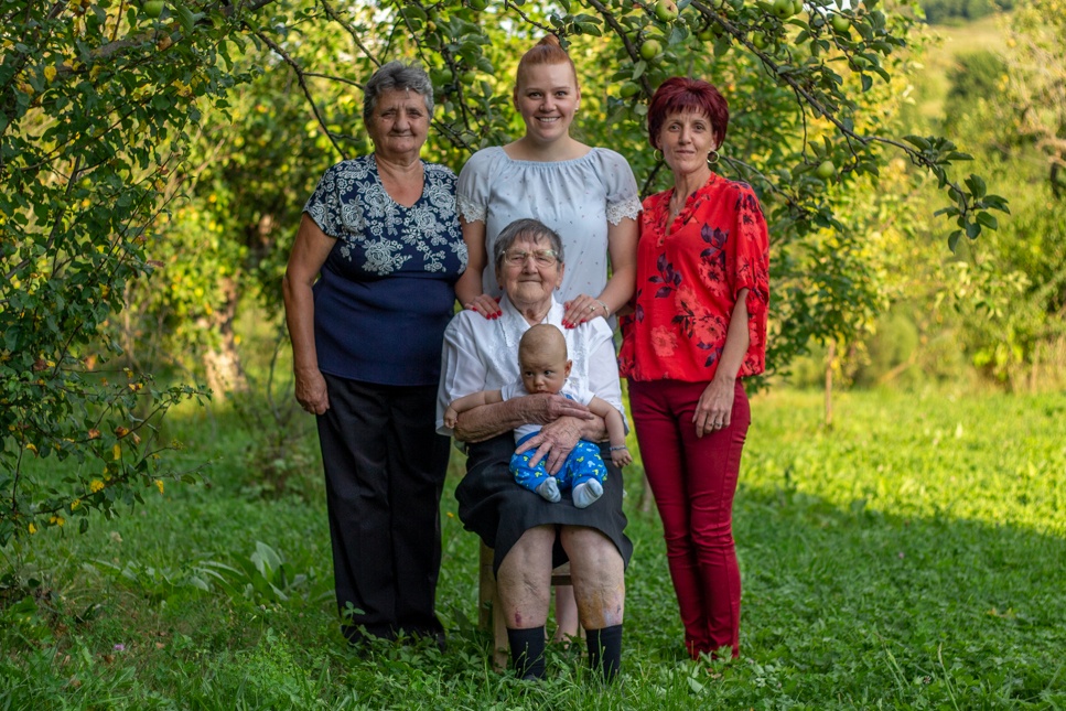 Öten vannak a fényképen: a legény, az anyuka, a nagymama, a dédi, és az üknagymama. Ötgenerációs történet Székelydobóból.
