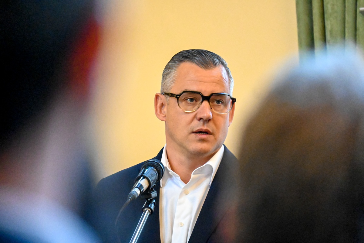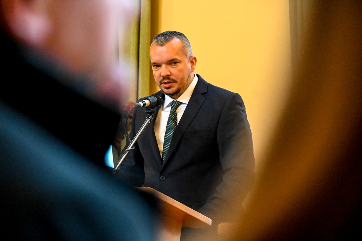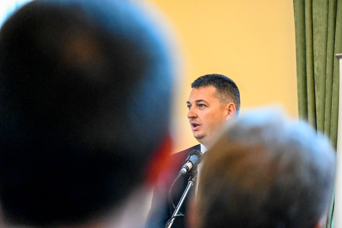 Bíró Barna Botond, a megyei tanács megválasztott elnöke járul a mikrofonhoz.