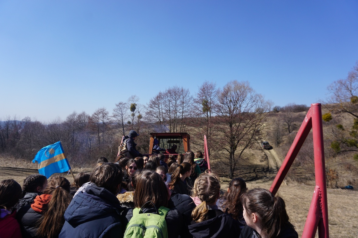 Lassan a nap végéhez közeledünk. Újra székely zászlót lobogtatva, most már fáradtan indulunk vissza a traktorhoz, mely böffent, nincs baj, nincs haragban. Csoportképeket készítek az osztályokról, majd visszaülök az utánfutóban elhelyezett deszkára. Novák tanár úr érdekesnek találja az off-road élményt.