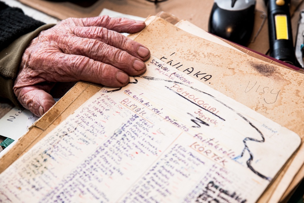 – Gyermekkorban láttam, hogy egyik szomszédom egyik fát a másikra rakja, oltja a fákat. Én is szereltem egy bicskát, hogy megpróbáljam, nagyon sokat gyakoroltam, tényleg szerettem ezt csinálni. A katolikus iskola kútjába ejtettem az első bicskámat, amit azóta is sajnálok. Úgy vagyok vele, hogy az ember ismerjen meg mindent, amivel kapcsolatban áll: tudja a biológiáját, felhasználását, történetét, fajtájának eredetét. Énlaka és határa nagyon alkalmas a gyümölcs számára. Ahogy nézelődtem a faluban, akkor vettem észre, hogy vannak olyan fajták, amelyekkel máshol nem találkoztam. Felmértem a létező fajtákat a faluban és környékén, a kiveszőnek hitt fajtákat ráoltottam más alanyra, egy kertet csak erre a célra hoztam létre. Valójában ez egy génbank – jegyzetet és térképet készített a gyümölcsfajtákról, nyolcvankét féle almafajta került ebbe az adatbázisba.