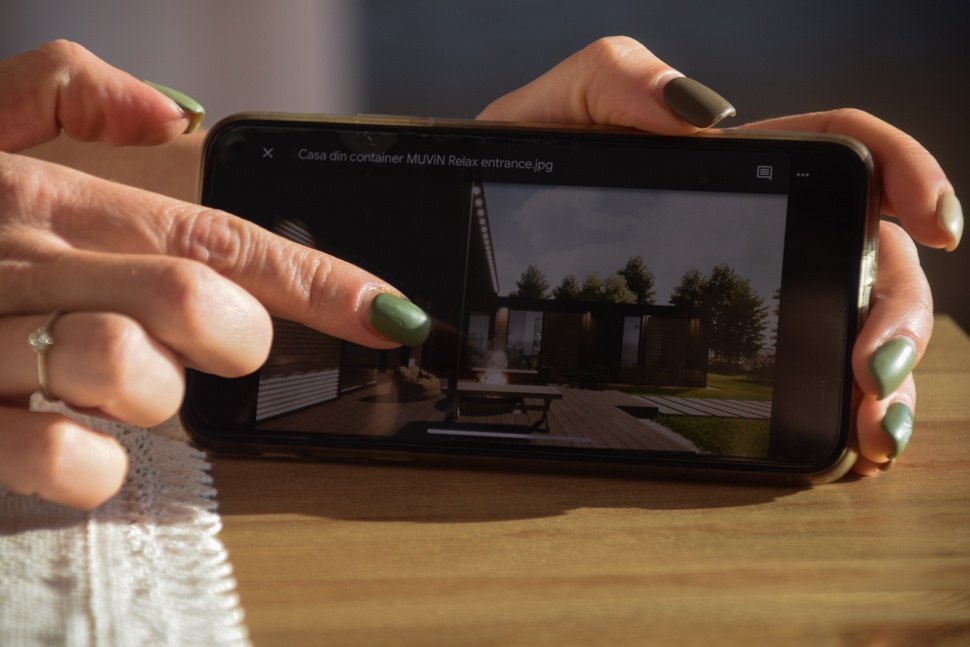 Kiszállunk az autókból, Precub Mária, a MUViN Containers tulajdonosa megy elől, otthonosan mozog. Sorra tárja ki kedvenc projektje, a szürke ház óriási ajtajait és ablakait.