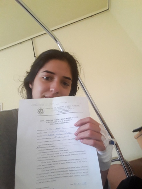 Miután nem hagyott a lelkiismeretem nyugodni, aznap este bementem a kórházba, hogy tesztelésre iratkozzak. Kérdeztek a panaszaimról, miután beszéltem az állapotomról, mondták, hogy már nem mehetek haza, be kell feküdnöm. Tüdőröntgent, EKG-t készítettek, majd vért vettek. Onnan vittek a „suspect” helynek elnevezett kórterembe, ott maradtam éjszakára. Fizikailag nagyon kifárasztottak a vizsgálatok, éjjel volt mire a kórterembe vittek.