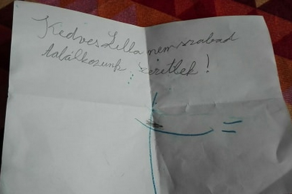 A tegnap este ezt a levelet találta Lilla mamája a postaládában, Gréta küldte Lillának.