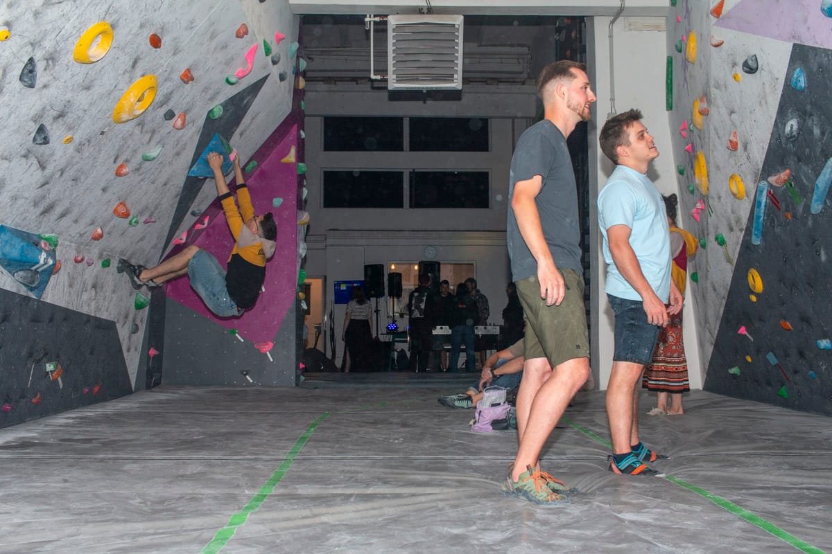 A falnál tizenhét mászó – kicsik és nagyok vegyesen – próbálgatták az új kihívásokat. Voltak, akik komolyan vették, mások csak örültek, hogy lehet lógni a plafonról. Mi, akik nem másztunk, közben a csocsóasztalnál, a bárpult mellett vagy épp a foodtrucknál múlattuk az időt. Aztán valahogy este lett, és senki nem sietett haza.