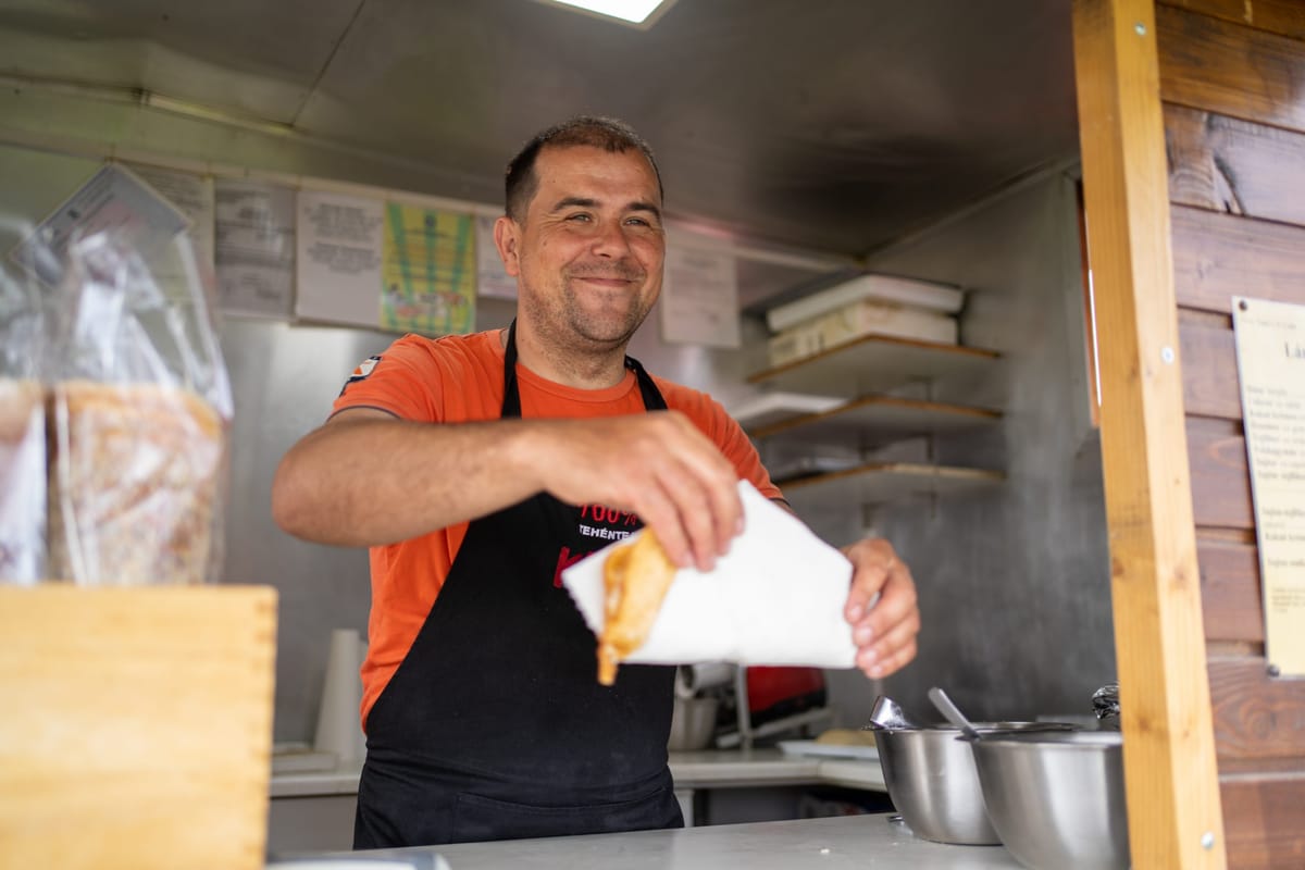 – Én azelőtt soha nem ettem még egy lángost sem – vallja be őszintén a harmincas éveiben járó Szabó Csaba. – Kürtőst ettem rendezvényeken, de a lángos akkor még nem volt annyira elterjedve, mint most. Még ma is előfordul, hogy valakivel mi kóstoltatjuk meg először, és nem bánja meg. Mi kürtőskalácsot és lángost is sütünk, hiszen, ha valaki nassolni akar, arra jó a kürtőskalács, de ha valaki enni és jóllakni szeretne, akkor lángost kér, ami egy jó hideg, frissen csapolt sör mellé különösen talál.