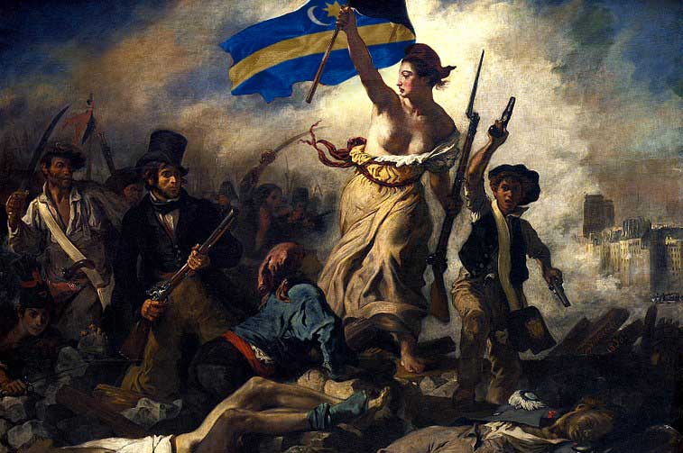 Eugène Delacroix A szabadság vezeti a népet c. 1830-as festménye alapján.