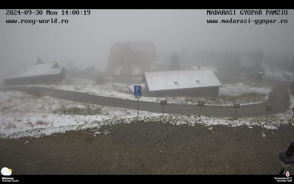 Szeptember 30-án reggel a Madarasi Hargita havas tájra ébredt, ahogy azt a Madarasi Gyopár Panziónál található webkamera is megörökítette.
