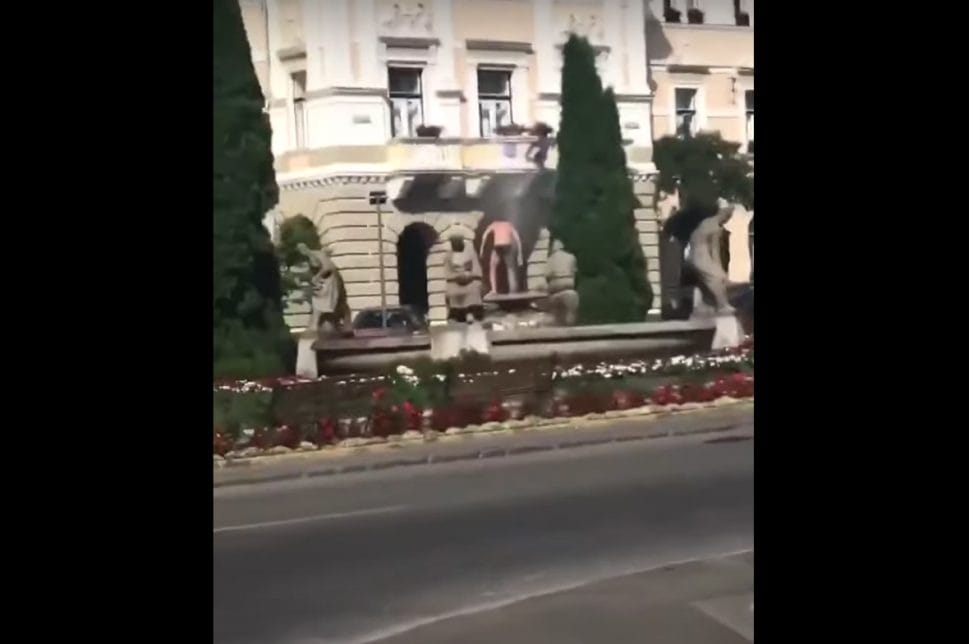 A napokban vált virálissá az a videó, amelyen egy férfi látható a városháza előtti szökőkútnál, jobban mondva: rajta és benne.