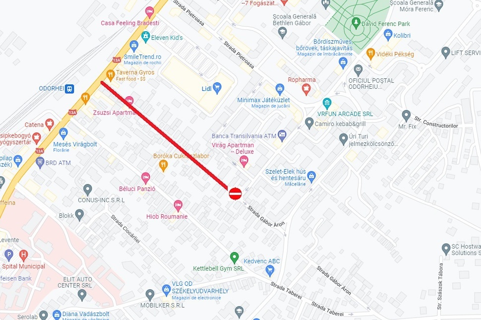 A Gábor Áron utcában végez munkálatokat holnap a Harvíz Rt., ezért reggel 9 órától a Gábor Áron utca Győzelem és Bethlen Gábor utcák közti szakaszát lezárják a forgalom elől – értesít a székelyudvarhelyi polgármesteri hivatal.