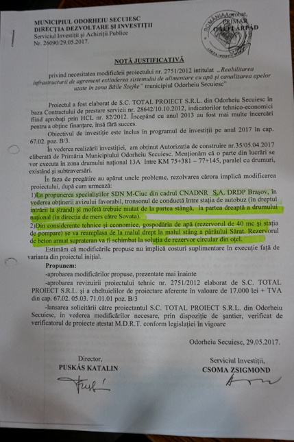 A polgármester úgy gondolja, nem helytálló a Macops állítása, hogy csak a bírósági (judiciar) szakértő véleményezhette volna a munkálatokat, mivel ide technikai szakértőre volt szükség, akit ők ki is hívtak. Azzal sem ért egyet, hogy ő látta és elfogadta volna az elveszett egyes számú tervezői utasítást. „Nincs láttamozva, nincs pecsét rajta, nincs a polgármesternek az aláírása rajta. Írja, hogy beneficiar Municipiul Odorheiu Secuiesc és üresen van hagyva. Nem tudnak elé venni egy olyan papírt, amelyiken az én aláírásom rajta van” – állította.