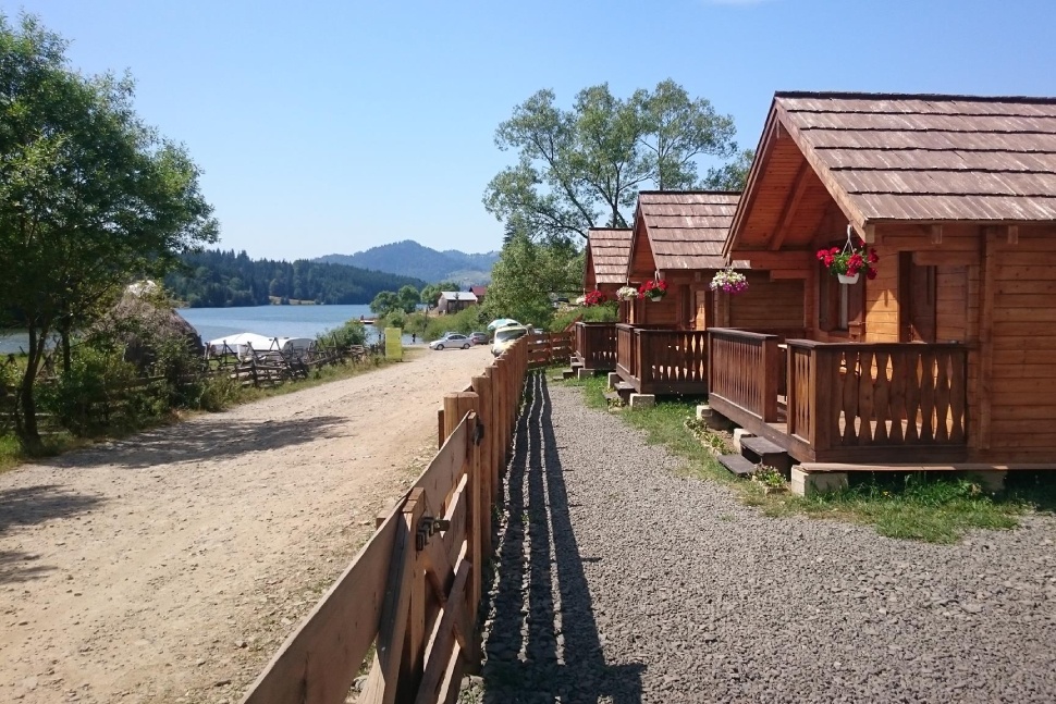 Mi végül egy négyszemélyes házikót választottunk „a tó farkánál” (románul: „la coada lacului”), amelyből összesen hét-nyolc volt egy sorban egy bekerített telken. Közülük az egyik házikó volt a közös tusoló és mosdó, külön bejárattal a nőknek és a férfiaknak, több fülkével – aminek a tisztaságára panaszom nem lehet, igaz, kevesen voltunk. A telek végén pedig egy négyfelé osztott, fedett tűzhely volt, és egy nagy filagória padokkal és asztalokkal, ahol kényelmesen el lehetett fogyasztani a magunkkal vitt ételt-italt (a házikóban volt hűtő). De ha kosár helyett pénztárcával jöttél, akkor sem maradtál éhen: a parton egy büfékocsiból jóféle miccset, szalmakrumplit, flekkent, a tó körüli aszfaltút mentén pedig palacsintázót, grillteraszt meg sokcsillagos vendéglőt is találsz.