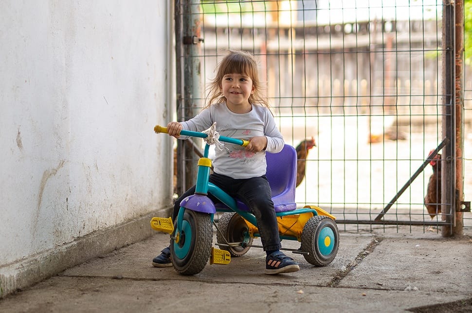 Mire visszaérünk, már Zsombi nagyobbik lánya, a 3 éves Janka is az udvaron van, magabiztosan mászkál a hatalmas gépek között, a duda és a traktorok színe hozza lázba. Apja is korán kezdte, már 5-6 éves korában a kormányhoz ültették, ki sem látszott mögüle.