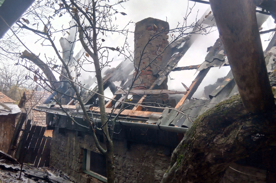 „Nagy valószínűséggel” a nem megfelelően szigetelt kémény okozhatta a tűzvészt, amely körülbelül negyven négyzetméteren pusztított. A tetőszerkezet szinte teljesen leégett, de a lángok más épületekre való terjedését sikerült megállítaniuk – számolt be az önkéntes parancsnok.
