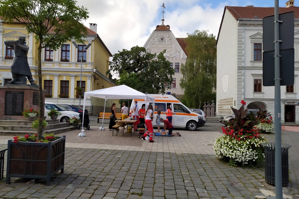 Udvarhelyen a Márton Áron téren, a Vasszékely előtt felhúzott sátornál éppen az újraélesztést mutatja a szolgálat egyik munkatársa. A nyílt napon Székelyudvarhelyen kívül találkozhatnak a mentősökkel az érdeklődők Székelykeresztúron, Csíkszeredában és Gyergyószentmiklóson. Az arrajárók vérnyomását, vércukorszintjét is megmérik a maszkot viselő mentősök ingyenesen. A mentőautó belsejébe is be lehet nézni, ottjártamkor is gyermekek kukucskáltak be az ajtón.