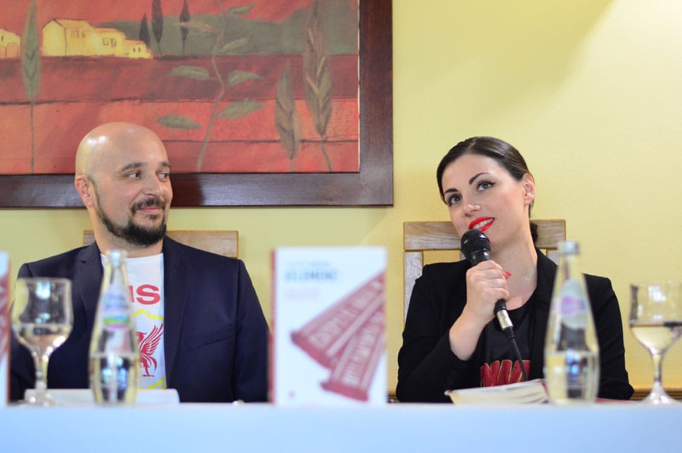 már a találkozó elején szóba került, a szerző a könyvében is elég sokat ír erről. Az 1996-97-es idegenbeli mez történetét hallgathattuk meg, Adrienn szerint ez a világ legszebb meze. Ezt úgy vásárolta meg kollégistaként 980 forintért a hét elején egy turkálóban, hogy a héten összesen 1000 forintból kellett megélnie, de megérte éhezni miatta, mondta.