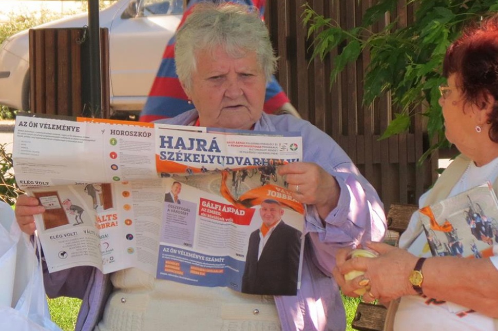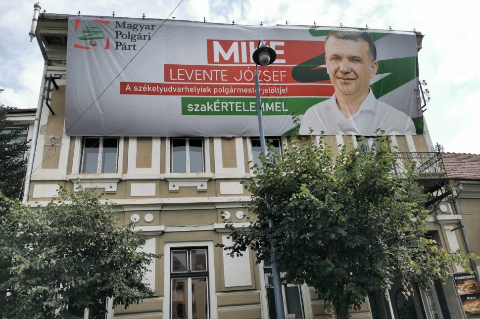 Mike szerint „a polgármester egyik munkatársa” azzal fenyegette, hogy az ügyészségen feljelenti az MPP reklámbannere miatt, amin a polgármesterjelöltje szerepel. Pedig négy éve még Gálfi arca volt azon a homlokzaton – emlékeztet Mike – az MPP és az EMNP közös jelöltjeként.