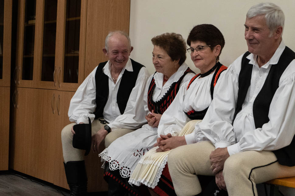 Már a bejáratnál egy kedves néni szegődik mellém, úgy megyünk be a terembe, mintha régi ismerősök lennénk. A tágas, nagyjából kultúrotthon méretű terem már tele van, a néni alig kap egy szűk helyet az egyik padon, ahová le tud ülni. A padokat elfoglalók szinte mind nyugdíjasok, jókedvűen cseverésznek, néhányuk még kendőt, maszkot is öltött magára, ha már farsang van. De a többiek is kicsinosították magukat: előkerültek a masnik, a vörös rúzsok, a piros körmök, a kalapok. Látszik, mind izgatottan készültek az eseményre.