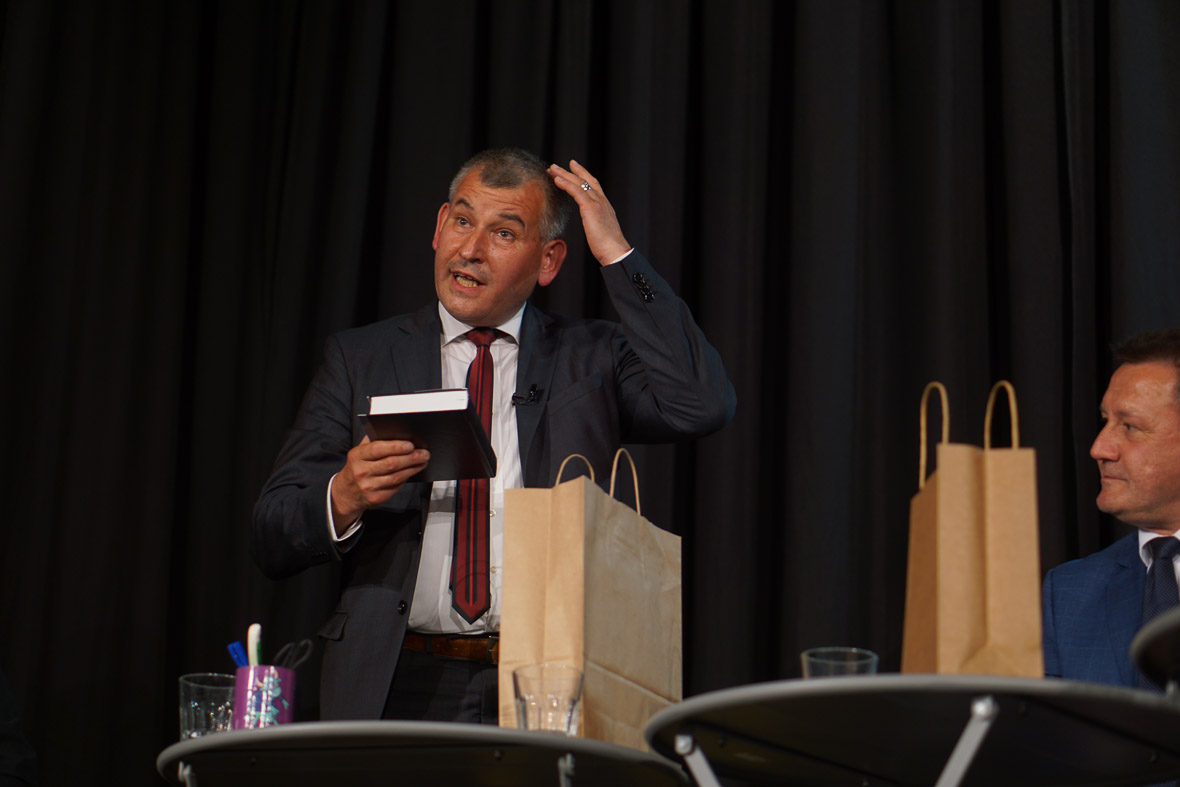 Az előválasztáson Antal Lóránt Szakács-Paál István keze alá segíti az olvasnivalót. Fotó: Egyed Ufó Zoltán