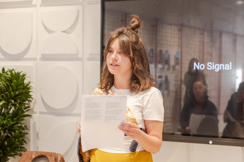 Az élmény meglepő volt, nem is gondoltam volna, hogy ekkora hatással lesz arra, ahogy magamra alkotóként gondolok. Mi írók szeretünk mindig szövegben gondolkodni, mi másban is gondolkodhatnánk… Írott szövegben, ami papíron van feketével, vagy az alternatívabbak fekete alapon fehérrel képzelik el. Ráadásul az olvasás is egy privát tevékenység. Ennek a rezidenciaprogramnak köszönhetően bátrabban vállalom fel, hogy másképp van kedvem fantáziálni a versírásról és a szövegekről úgy általában. Nem biztos, hogy a hagyományos formákhoz és médiumokhoz kell nekem igazodni. Kíváncsi vagyok, mi lesz ebből az érzetből, ami most eltölt.