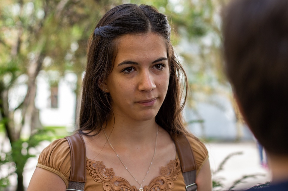 A Benedek Elek Pedagógiai Líceumnál az érettségire való beiratkozási ívet töltögetik éppen. Benedek Orsolya, angol és természettudományok szakon tanuló diák mondja el, hogy az ő iskolájukban is komolyan veszik a protokollt: nem mehetnek be anélkül, hogy megmérnék a lázukat, kézfertőtlenítőt csöpögtetnek a kezükbe, és minden egyes sarokban is van kézfertőtlenítő. Tizenöten lehetnek egy osztályban, két méterre vannak egymástól a padok, „kábé ugyanaz, ami a zárt terekben”, fogalmaz. A maszkviselés is kötelező, Orsi úgy tudja, ellenőrizni fogják azt. Az iskola körül néhány egészségügyi alkalmazott is feltűnik kezeslábasban és arcplexiben, „doktornő és asszisztensek, ők is figyelnek ránk”, tudjuk meg.