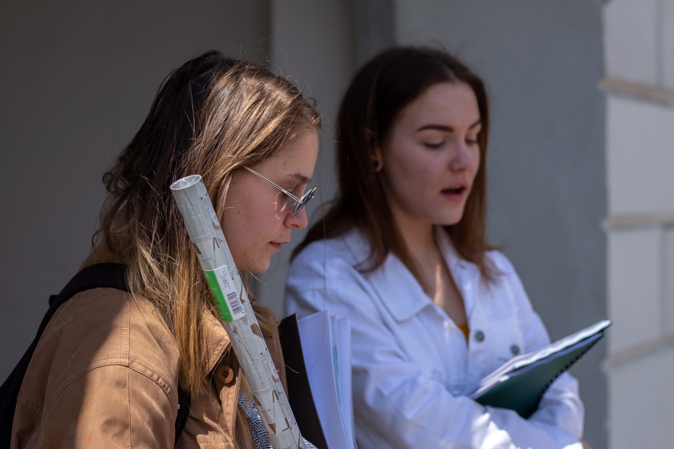 A Benedek Elek Pedagógiai Líceumnál az érettségire való beiratkozási ívet töltögetik éppen. Benedek Orsolya, angol és természettudományok szakon tanuló diák mondja el, hogy az ő iskolájukban is komolyan veszik a protokollt: nem mehetnek be anélkül, hogy megmérnék a lázukat, kézfertőtlenítőt csöpögtetnek a kezükbe, és minden egyes sarokban is van kézfertőtlenítő. Tizenöten lehetnek egy osztályban, két méterre vannak egymástól a padok, „kábé ugyanaz, ami a zárt terekben”, fogalmaz. A maszkviselés is kötelező, Orsi úgy tudja, ellenőrizni fogják azt. Az iskola körül néhány egészségügyi alkalmazott is feltűnik kezeslábasban és arcplexiben, „doktornő és asszisztensek, ők is figyelnek ránk”, tudjuk meg.