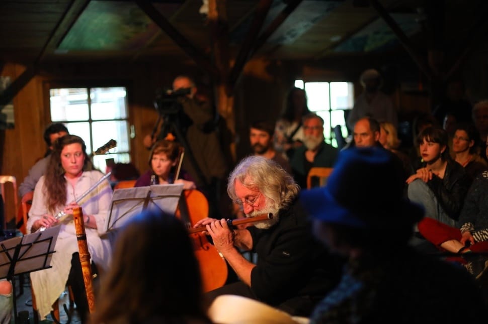 A provence-i trubadúr dobbal-furulyával varázsolja el a közönséget.
