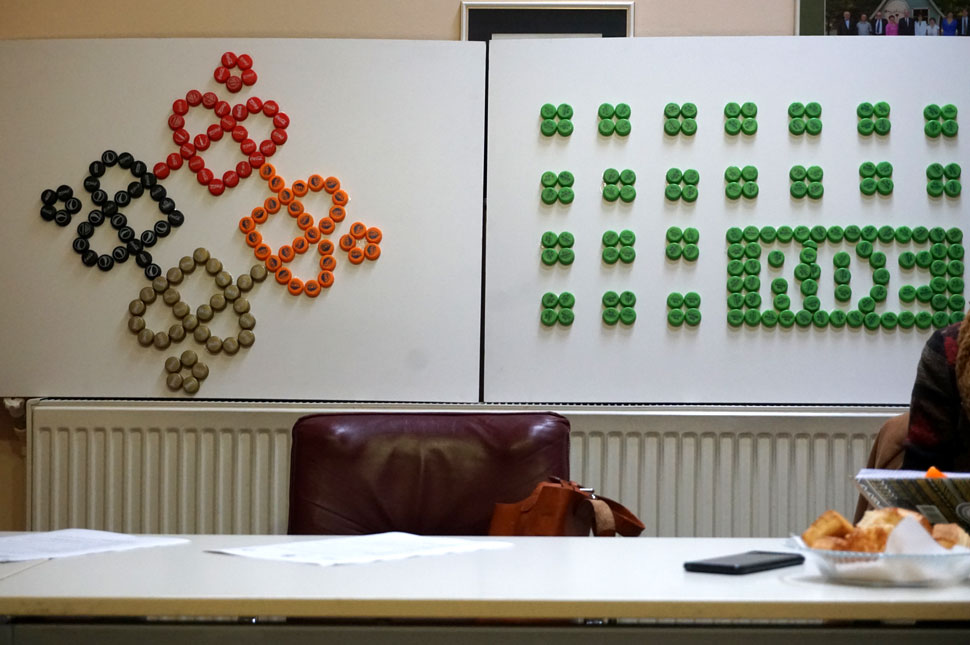 Indul a Kupakmozaik. Elsőként a szemétszállító vállalat munkatársai rakták ki a két szervezet logóját.