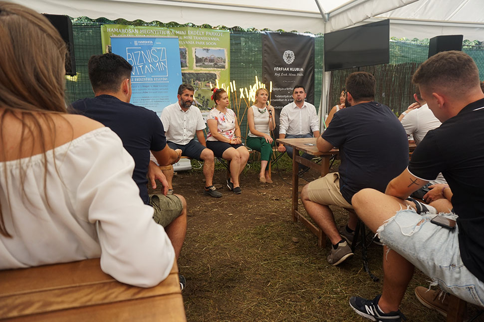 Én a szombati Ne húzd el a csíkot! Az egyetemi központok vonzereje vs. székelyföldi karrierlehetőségek című előadást szemeltem ki magamnak, melynek az Erdély Café Sátor adott helyet. A beszélgetést Vas Réka vezette. A meghívottak között Mara Gyöngyvér (rektorhelyettes, Sapientia – EMTE, Csíkszeredai Kar), Ilyés Ferenc (dékán, Székelyudvarhelyi Egyetemi Központ), Szöllősi Tamás (igazgató, Kézdivásárhelyi Ipari Parkok – hat ipari csarnokkal, melyeket a vállalkozók vehetnek bérbe, előnyük, hogy terület- és épület-adómentesek) és Borzási Sarolta (társalapító, a kolozsvári Rubik Inkubátorház, mely a tervek szerint ősszel indul) szerepeltek.