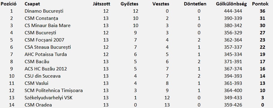 Az udvarhelyi együttes továbbra is a tabella utolsó előtti, kieső helyén áll, 7 pontos hátrányban az előtte álló Temesvártól a bajnokság felénél.