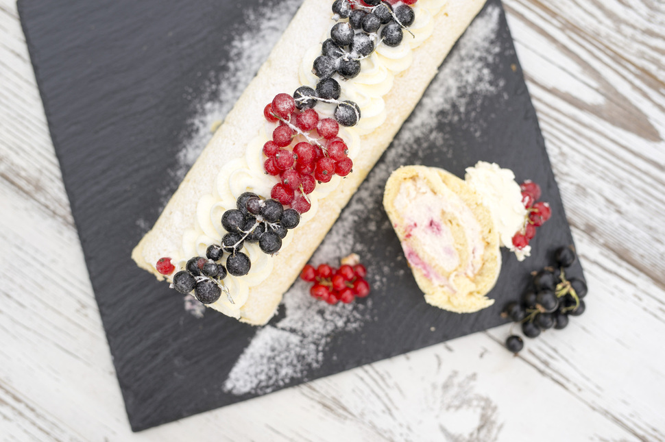 A krémhez kavarjuk habosra a puha vajat a porcukorral, adjuk hozzá a narancs levét és a krémsajtot. A ribizlit egy villával törjük durvára, és adjuk a krémhez. Ez a krém azért tökéletes piskótatekercshez, mert a vaj tartást, a krémsajt légiességet kölcsönöz neki. A kihűlt piskótát kenjük meg a krémünkkel (tegyünk félre néhány kanállal a díszítéshez), majd ugyanabba az irányba, ahogyan a konyharuhába tekertük, csavarjuk fel. A félretett krémet töltsük habzsákba, és ízlésesen nyomjuk a piskótatekercs tetejére. Díszítsük friss ribizlivel, és néhány órára tegyük a hűtőbe.