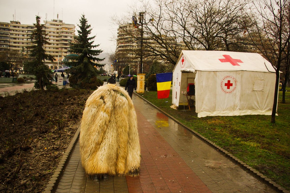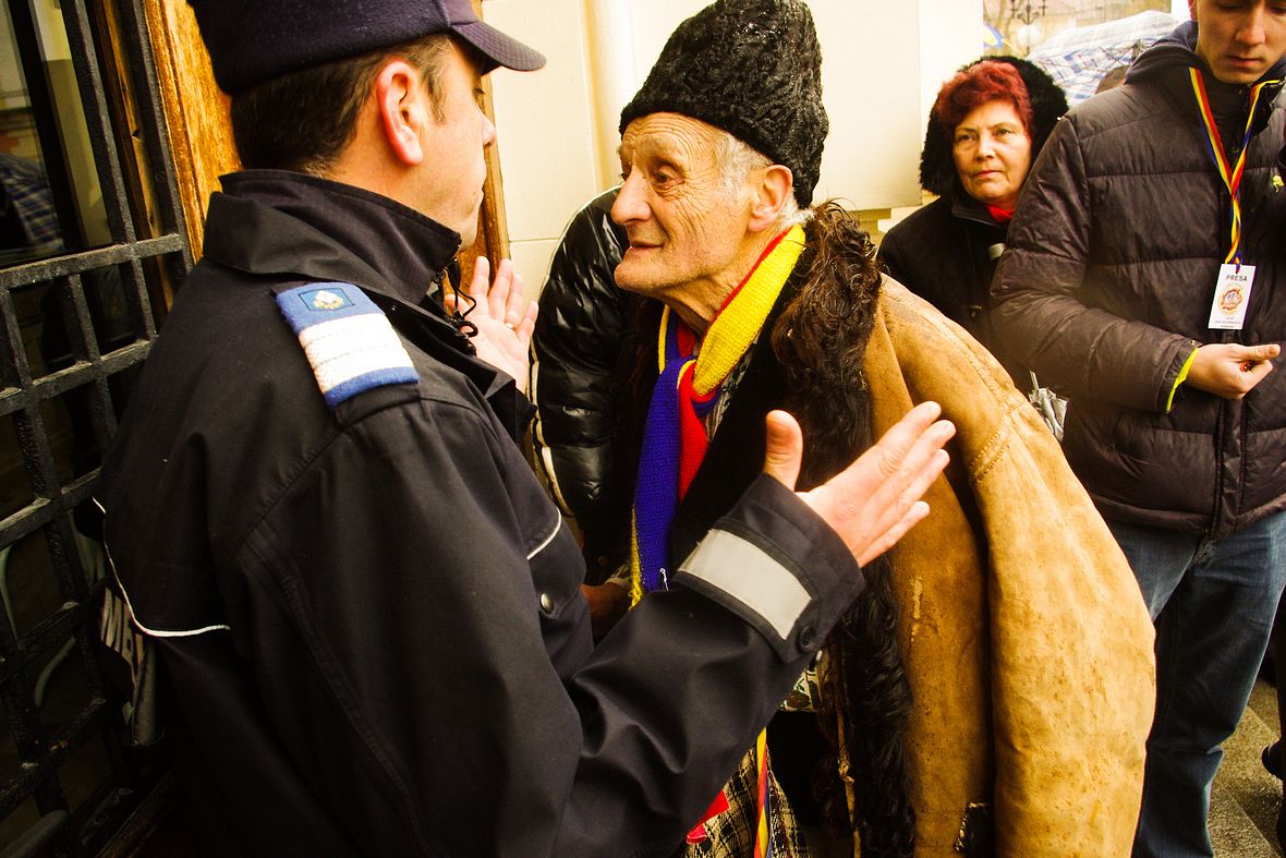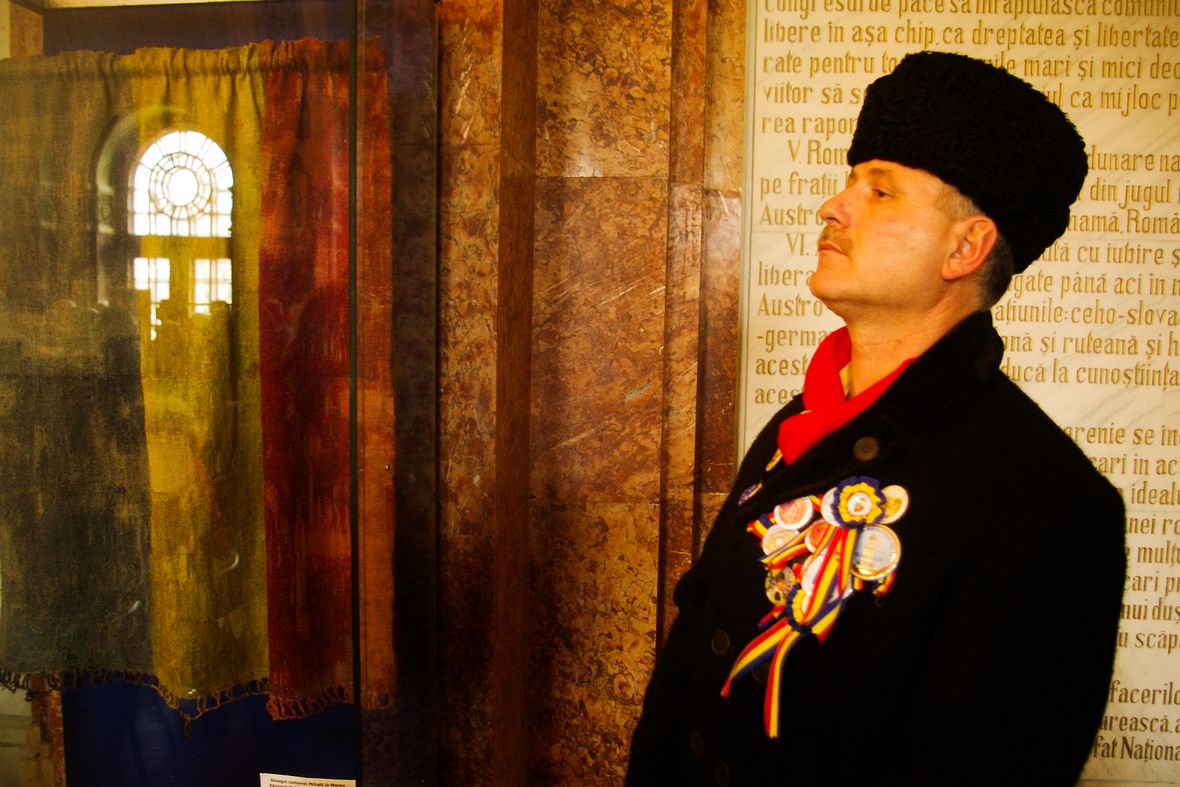 Máskor nyilvános az esemény, de most csak a politikusok, a nagy hősök, és a vitrinben a román zászló hivatalosak az ünnepélyre.