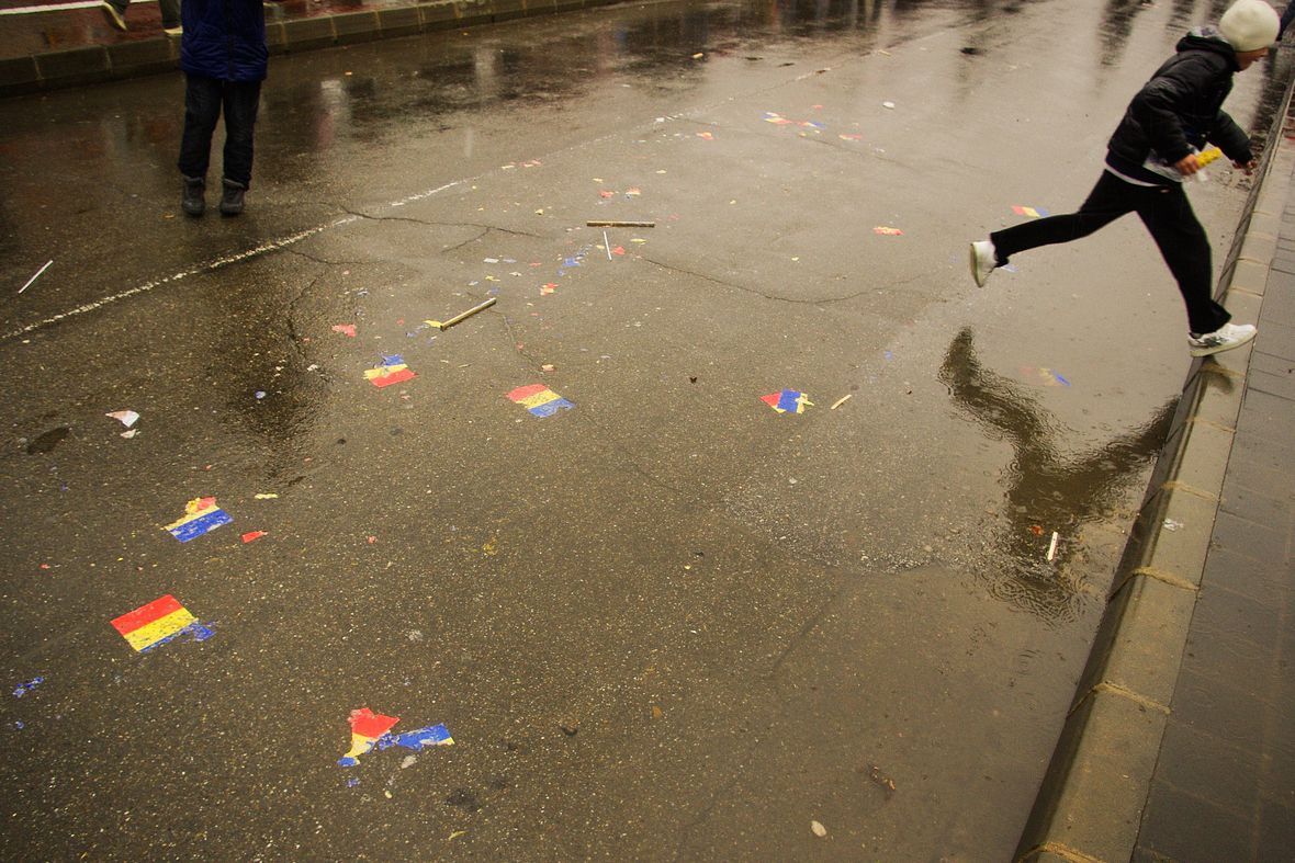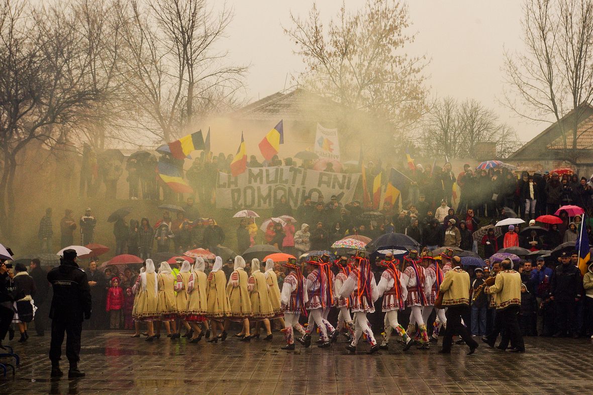 A felvonulást focirajongók teszik színesebbé, akik egyben Beszarábia visszacsatolását is kérik a puskaporszagú hangulatban.