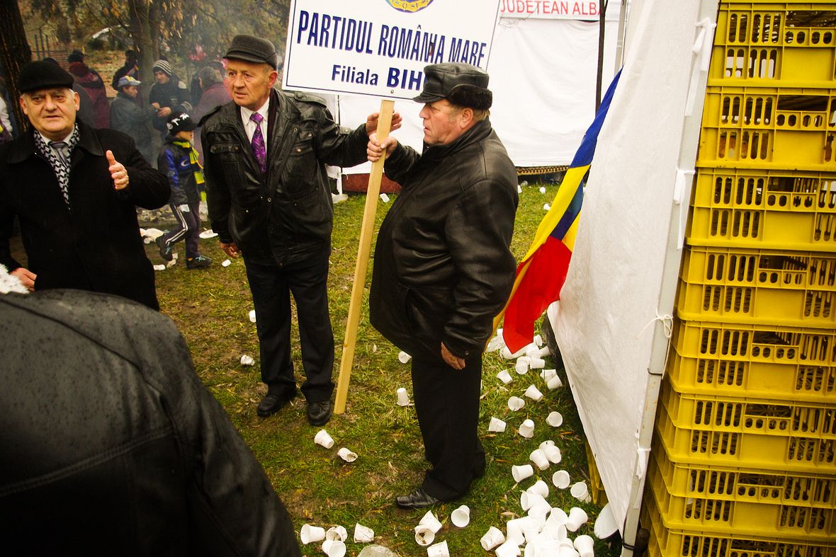 Mihai Viteazu szobrát koszorúzzák meg bemelegítésként. Politikai összecsapás színtere ez.