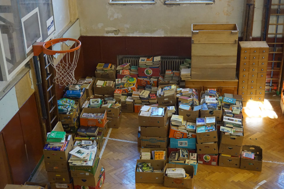 Ez most a könyvtár, legalábbis ideiglenesen. Különben egy jó alkalomnak bizonyult, hogy portalanítsák és kiválogassák a könyveket. Néhány diákot találunk a zsúfolásig megtelt előtérben, akik erre a nemes feladatra vállalkoztak. Elvégre Iskola másképp van, nem igaz? – jegyzi meg frappánsan egyikük.