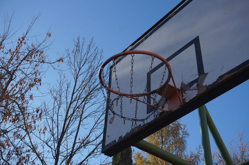 Ha már itt vagyunk, kilépünk az udvarra is, hadd lássuk, milyen állapotok uralkodnak a sportpályákon. Innen látszik, hogy a tornatermet éppen fedik újra, de a pályákon a helyzet csak romlott az elmúlt évtizedben. Az igazgató szavai mégis reménnyel töltenek el: "Nagyon szükséges volna egy komoly sportcsarnok. Az egyik sportpályán lehetne, de egyelőre csak álomként van meg (...) A tornaterem muzeális értékkel bír, de kicsi, nem felel meg az aktuális követelményeknek".