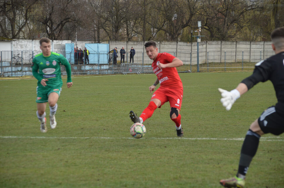 A félidő hajrájában érett góllá az udvarhelyi nyomás, amikor Antal Barna egy mester indítással ugratta ki Savin Cătălint, és az udvarhelyi játékos higgadtan gurította el a labdát a vendégek kapusa, Szántó mellett (1-1).