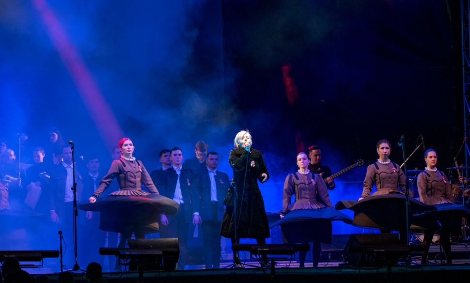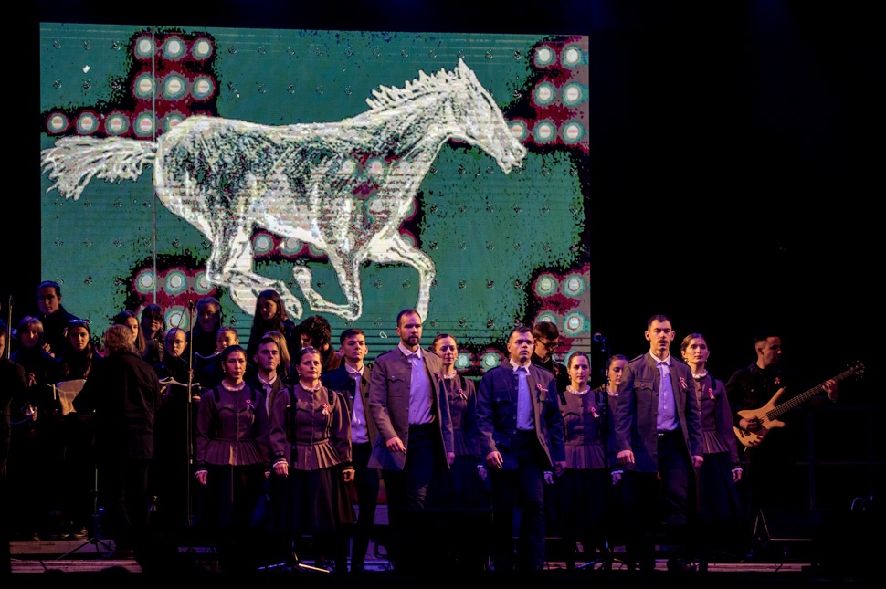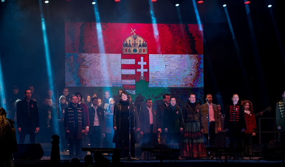 Szerdán, március 15-én este megtelt Székelyudvarhely főtere és az egybegyűlt tömeg ismét érezhette azt, amit 1848-ban, hogy mit jelent együtt lenni, magyarnak lenni, forradalmárnak lenni. Milyen lehetett közel kétszáz éve, amikor néhányan kimondták, majd tűzzel és vérrel megvalósították. És milyen lehet, milyen lehetne most. Együtt voltak az előadók a színpadon és együtt a téren. Azt érezhettük, hogy ez az a produkció, ez az a megemlékezés, amire ez a város képes, és ez az, amit megérdemel. A Tomcsa Sándor Színház, az Udvarhely Néptáncműhely, az alkalomból létrejött Forradalom zenekar és a Vox Gimiensis diákkórus közös produkciója.