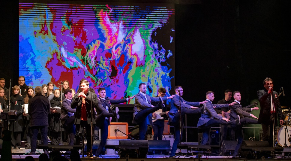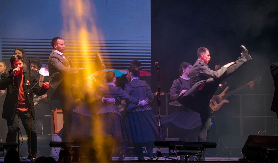 Összesen hetven körül a technikusokkal, a hangosítóval-világosítóvall együtt. Színpadon körülbelül 60-an voltunk.