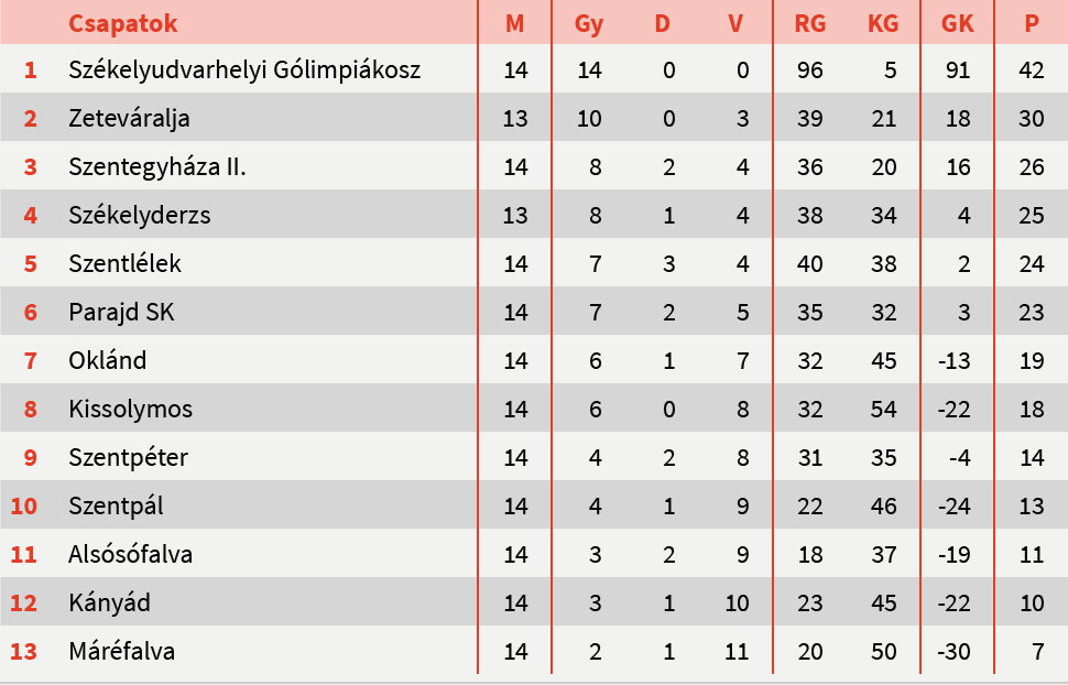 A 6. Ligában a Székelyudvarhelyi Gólimpiákosz tovább menetel. Már csak négy találat kell nekik, hogy elérjék a száz rúgott gólt. A tizennégy mérkőzésüken pedig mindössze ötöt kaptak. Már csak az a kérdés maradt számukra, hogy százszázalékosan nyerik-e meg a pontvadászatot.