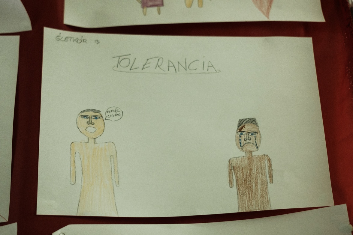 Már csak az utolsó hetes csoport van bent, és a folyosó falán a neonfényben ott van ez a rajz, amit egy 13 éves gyerek rajzolt. Gyorsan el is küldöm az angyalnak messengeren, hogy karácsonykor küldje tovább a karácsonyfa alá ezt az üzenetet is a sok ajándék mellé.