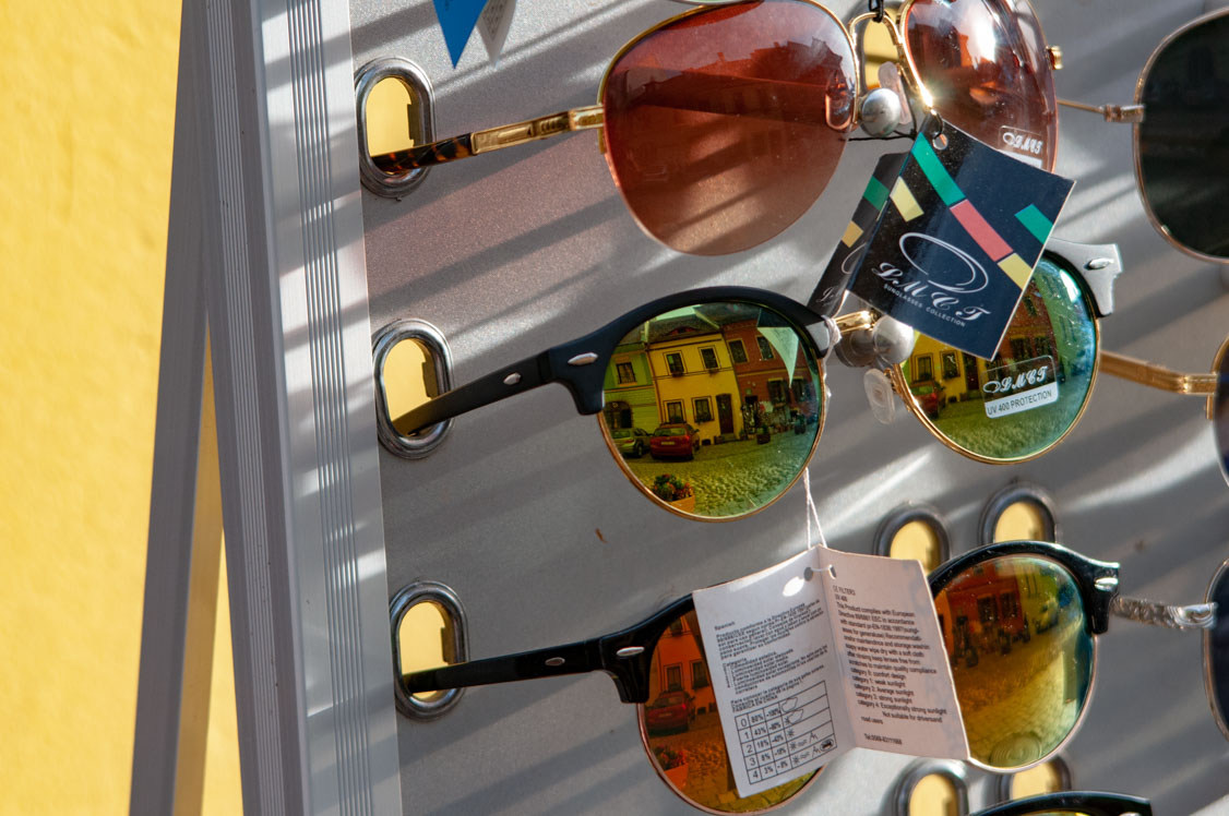 Még csodaszemüvegek is. Aki ezekkel nézi a világot, mindig boldog. És kapható a megunhatatlan hűtőmágnes, amivel már Küküllőt is lehetne rekeszteni.