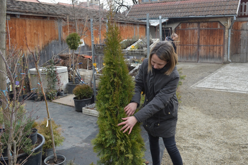 Például ezek – mutat rá a tujákra, ősszel ki voltak takarítva, de már így is megjelent egy-két barna levél, amit nagyon egyszerűen ki lehet szedni, és tavasszal még ráadásként egy megelőző permetezést is juttatunk nekik, hogy megvédjük őket a betegségektől. A megelőző növényvédelmet gyengébb hatóanyagú szerekkel is lehet végezni, amelyek nem annyira ártalmasak, csak kell tudni, hogy milyen betegség ellen milyen időszakban kell védekezni. Ez már szakértelmet kíván, de szívesen segítenek a kertészetekben.
