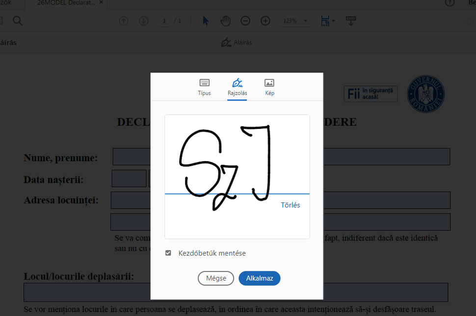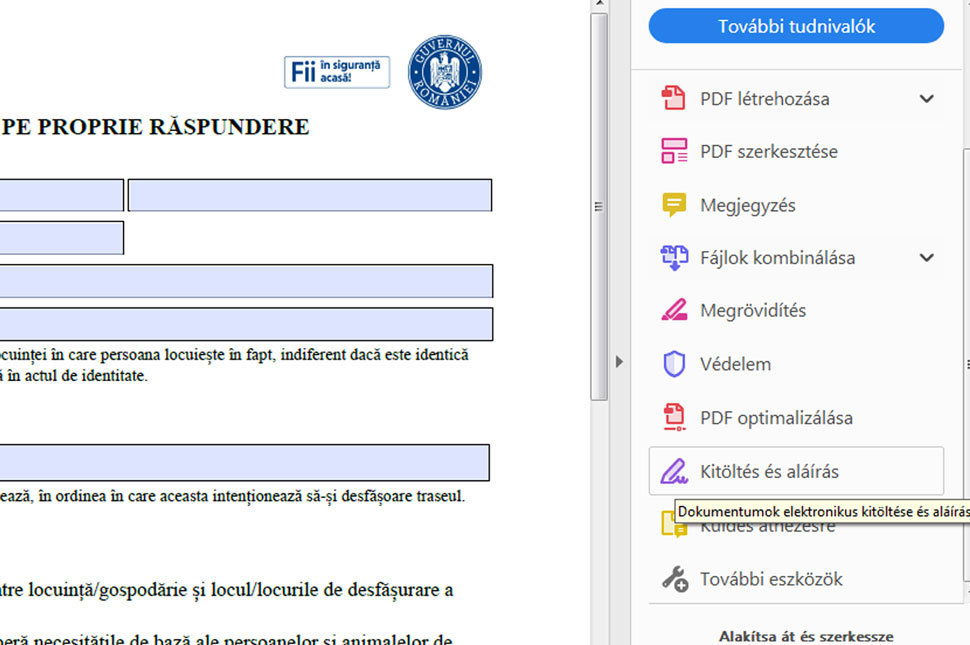 Éppen ezért kerestünk, és találtunk egy olyan módszert, amellyel viszonylag könnyen ki lehet tölteni és alá is lehet írni digitálisan a kért dokumentumot.