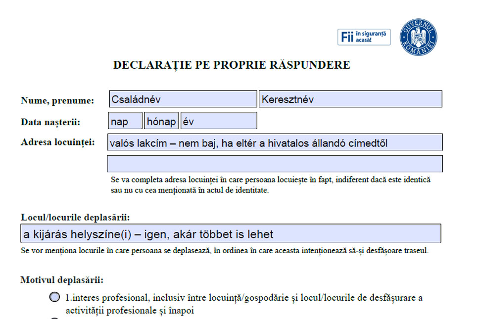 Habár az erre vonatkozó (3.) katonai rendelet csak annyit ír elő, hogy alá kell írni a nyilatkozatot, és digitálisan is be lehet mutatni, a Stratégiai Kommunikációs Csoport március 26-ai közleménye egy olyan instrukciót is tartalmaz, hogy kinyomtatva kell aláírni, ezért az általunk javasolt módszert csak saját felelősségre ajánljuk használni.