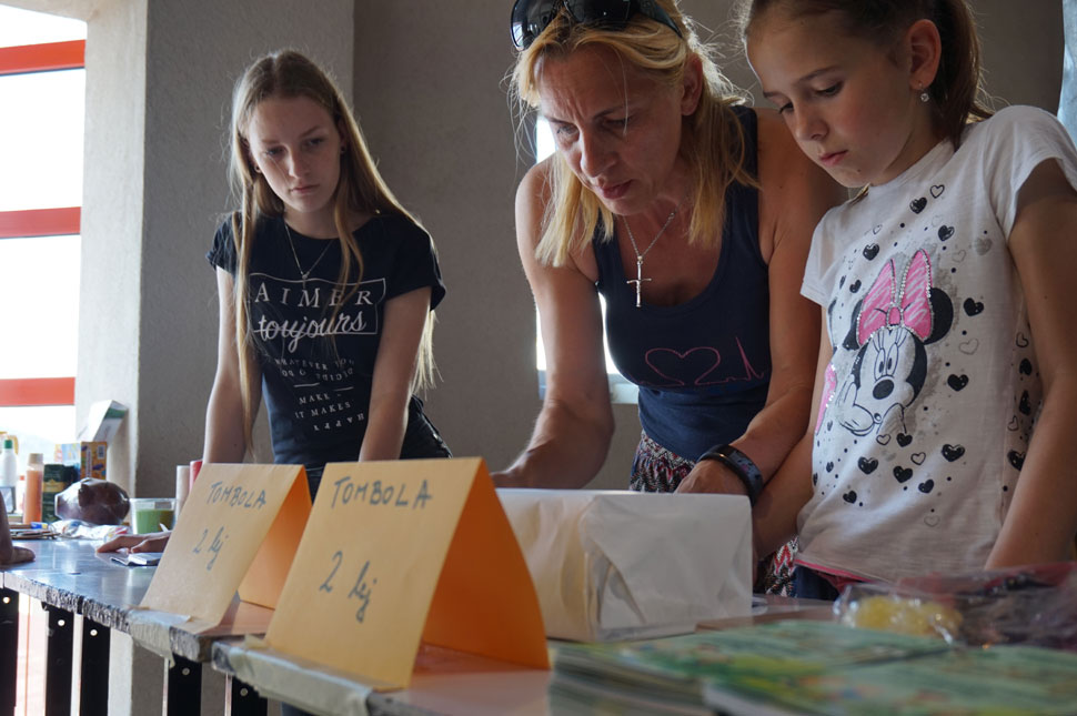 Két lejbe kerül egy tombola, hétkor tartják meg a sorsolást, és ha a szerencsés nyertes nincs a helyszínen, telefonon értesítik. Ott jártamkor a tornatanárnő máris befektet, és tíz tombolát vásárol.