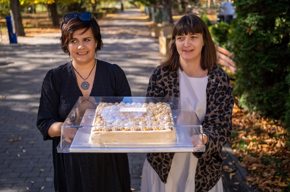 Aztán előkerül a torta, s míg Halász Judit énekel, elfújjuk a gyertyákat, nagyot ugrunk ijedtünkben örömünkben a konfetti-ágyútól, s miközben arra várunk, hogy kapjunk egy szeletet a már nagyon várt krémes finomságból, dézsmálni kezdjük az Átlátszó Erdélytől ajándékba kapott nagy zsák pufulecet egyenesen a kolozsvári ószerről.