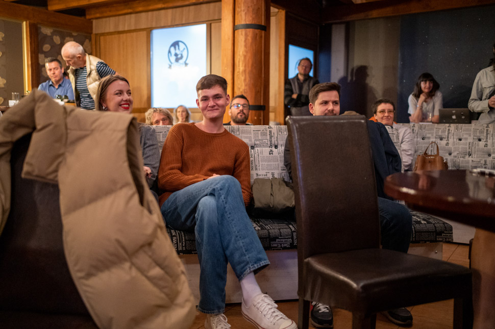 Minden alkalommal, amikor hátranézek a vállam felett, egyre több új arcot, ismerősöket és ismeretleneket látok a teremben. Nem csoda, hiszen mi lehet szórakoztatóbb a kisállatos tartalomnál? Hát az a kisállatos tartalom, amit Szily László, a 444 újságírója és Jakab-Benke Nándor, a Filmtett főszerkesztője ad elő. Az amúgy is fenomenális hangulat még tovább fokozódik, szakadunk a nevetéstől.