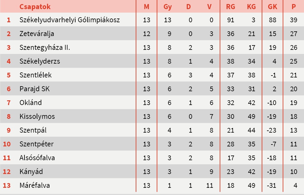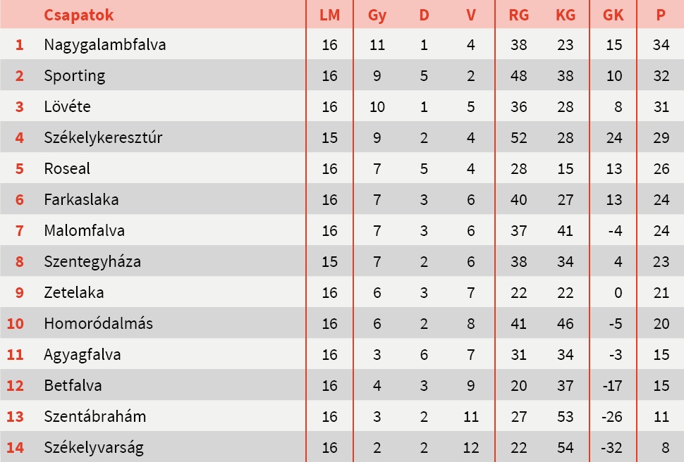 A 6. Liga tabellájának első helyét a Székelyudvarhelyi Gólimpiákosz bérelte ki. Ebben a csoportban a további dobogós helyekért fog menni harc.